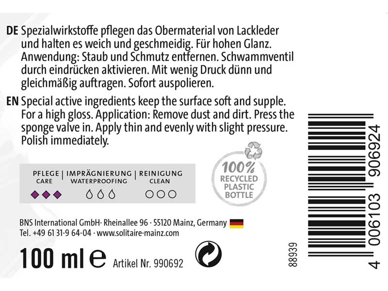Weiterführende Links zu "SOLITAIRE Patent Leather Oil (Lack-Lederöl) 100ml"