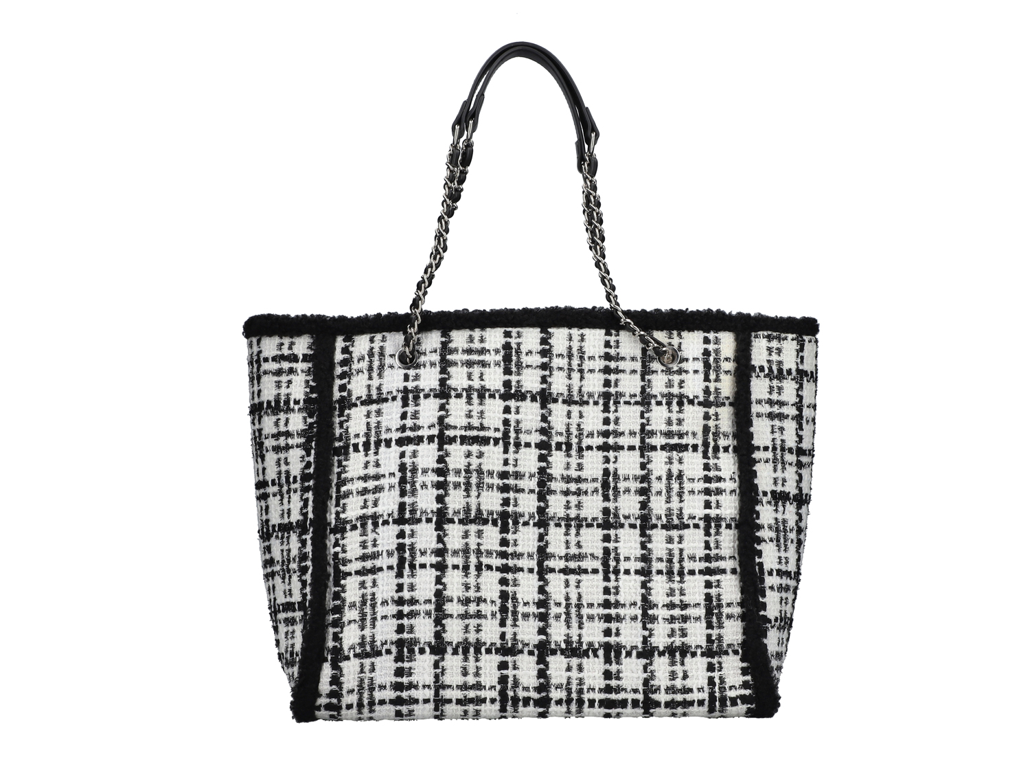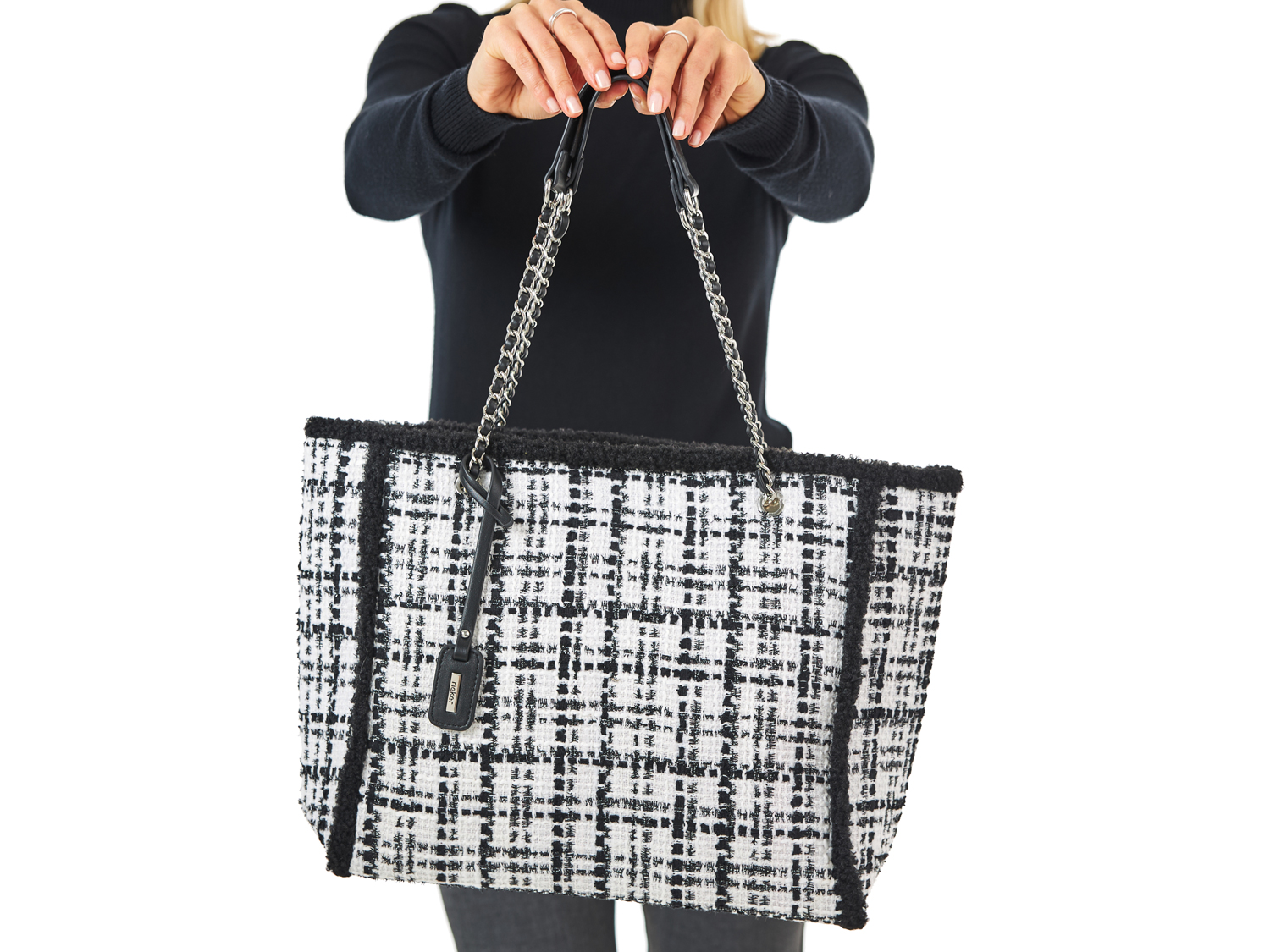 Die Shoppingtour kann nur perfekt werden! Dieser weiß-schwarz-karierte Rieker Shopper nimmt all dein Hab und Gut und neu erstandene Dinge bedingungslos auf. Super praktisch sind die drei Innenfächer, eines mit Reißverschluss, die anderen ohne Verschluss. Optisches Highlight: Die gewebten Henkel mit verflochtener Kette sowie die Fell-Details!