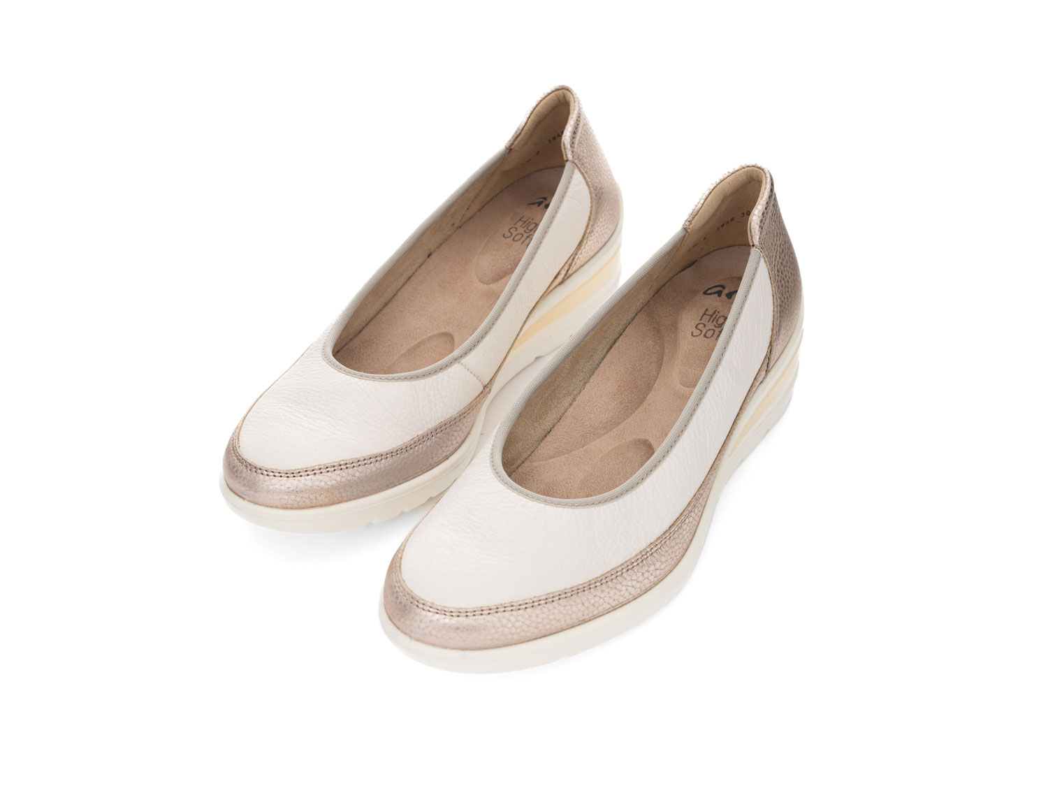 Dieser Schuh überzeugt mit seiner schlichten Eleganz und sportlichem Flair. Gefertigt aus hochwertigem, weichem Leder, bietet er nicht nur einen edlen Look, sondern auch ein besonders angenehmes Tragegefühl. Das bequem gepolsterte Fußbett, das bei Bedarf ausgewechselt werden kann, sorgt für individuellen Komfort. Dank der innovativen HighSoft Technologie erleben Sie ausgezeichnete Dämpfung und ein ermüdungsfreies Gehen - ideal für lange Tage. Die rutschhemmende Sohle bietet sicheren Halt, während der modische Keilabsatz den sportlichen Charakter des Schuhs unterstreicht. Das anschmiegsame Innenfutter und die optimale Passform mit Rundausschnitt machen ihn zum perfekten Begleiter für jeden Tag. Sein zeitloses Design lässt sich mühelos mit verschiedenen Outfits kombinieren und passt zu zahlreichen Anlässen - ob Freizeit oder Büro.