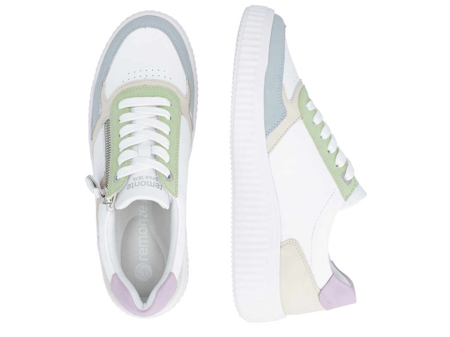Eleganz in jedem Schritt! Diese mehrfarbigen remonte Schnürschuhe für Damen sind Multitalente für deinen Alltag! Eine Schnürung ergänzt den Reißverschluss und sorgt für Funktionalität und Komfort. Für ein angenehmes Tragegefühl sorgt die remonte Lite n Soft Technologie mit ihrer ultraleichten Sohle und der gepolsterten und herausnehmbaren Einlegesohle. Dieses Modell ist in Extraweite geschnitten und auch bis zur Schuhgröße 45 erhältlich. Das Innenfutter aus Microvelour ist leicht und atmungsaktiv und sorgt somit den ganzen Tag über für ein angenehmes Tragegefühl. Bequemer gehts nicht!