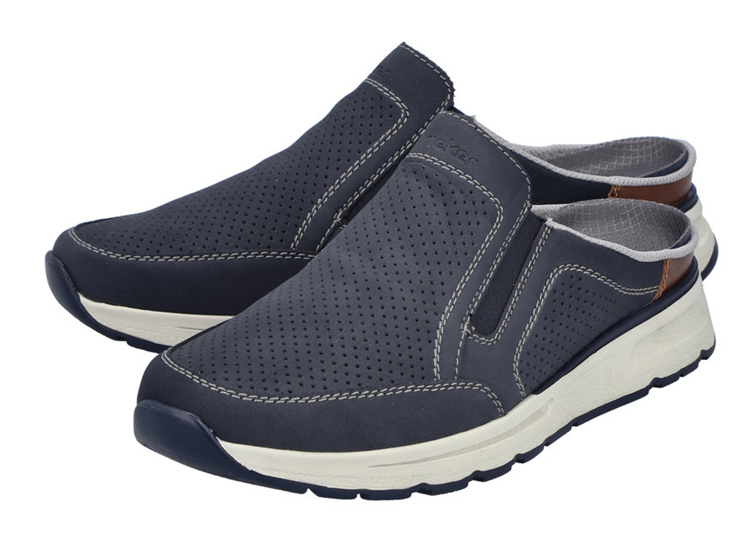 Comfort meets Style. Diese blauen Rieker Clogs für Herren garantieren ein himmlisches Tragegefühl. Außerdem passt der Schuh dank des Gummizugs wie angegossen. Mit der flexiblen und super leichten Sohle werden deine Füße bei jedem Schritt verwöhnt. Der Schuh verfügt über eine gepolsterte und herausnehmbare Einlegesohle, die ein bestechendes Komfort-Feature ist. Das Modell sichert dem Fuß zusätzlichen Bewegungsfreiraum, denn es ist in Komfortweite G geschnitten. Modisches Wohlgefühl im Stil von Rieker!