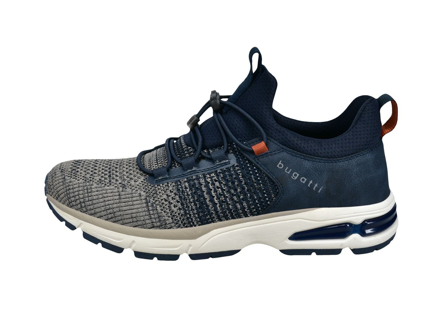 Die Herren-Sneaker haben eine Sockensilhouette und elastische Schnürsenkel, die ein einfaches An- und Ausziehen sowie eine gut sitzende und bequeme Passform garantieren. Diese dunkelblauen Sneaker von bugatti sind mit weichen Innensohlen mit Memory-Funktion ausgekleidet, die beim täglichen Tragen eine ausreichende Dämpfung garantieren. Sie bestehen aus atmungsaktivem Mesh und halten dadurch die Füße kühl und trocken.