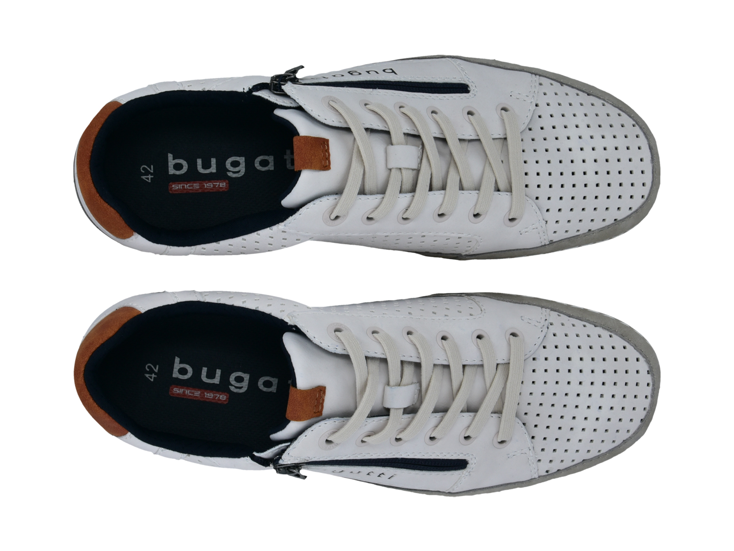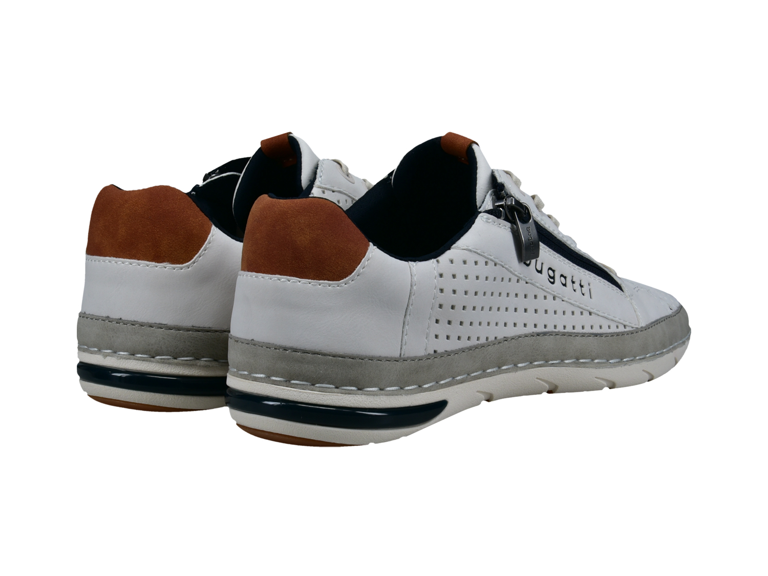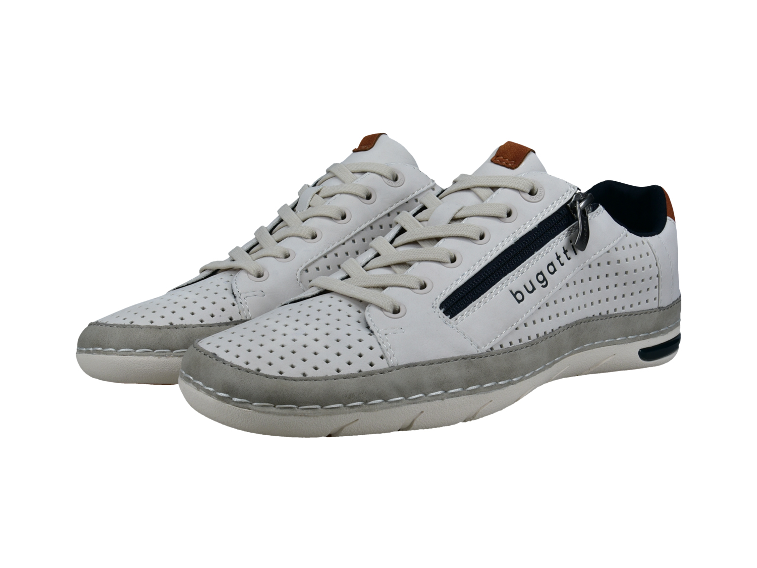 Mit ihrem vielseitigen Stil und praktischen Design bieten diese Schnürschuhe einen modernen Casual-Look, der sich mühelos mit deiner Garderobe kombinieren lässt. Ihr elegantes weißes Profil wird durch dunkelblaue und braune Farbakzente abgerundet. Sie sind mit einem Reißverschluss und elastischen Schnürsenkeln ausgestatte, die für mehr Komfort sorgen. Die Perforationen verbessern nicht nur die Ästhetik, sondern auch ihre Funktionalität. Ein bequemes Tragegefühl, das du noch lange genießen kannst!